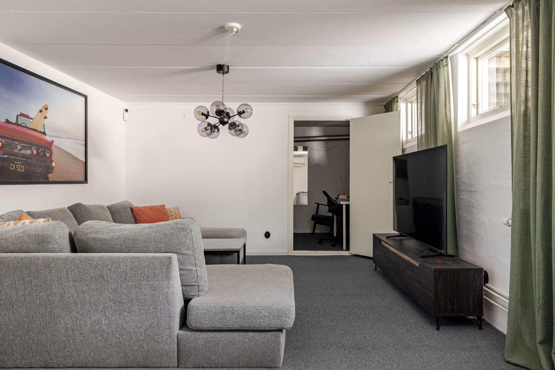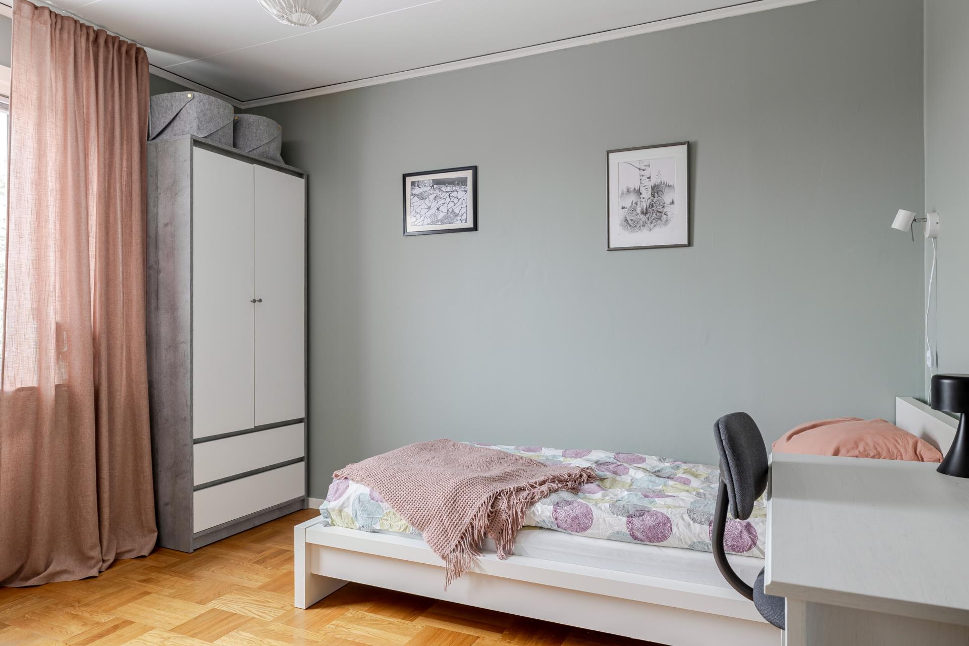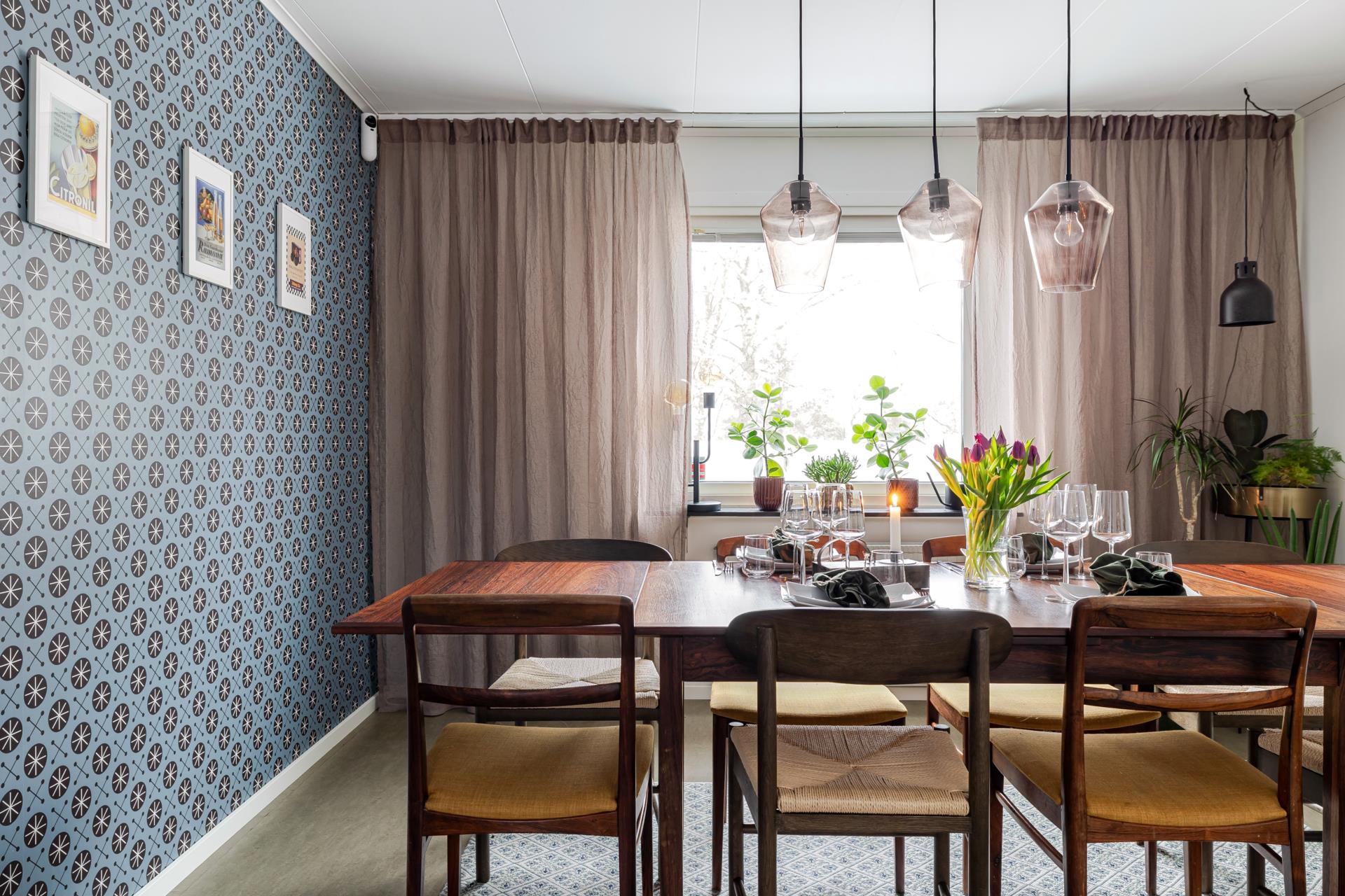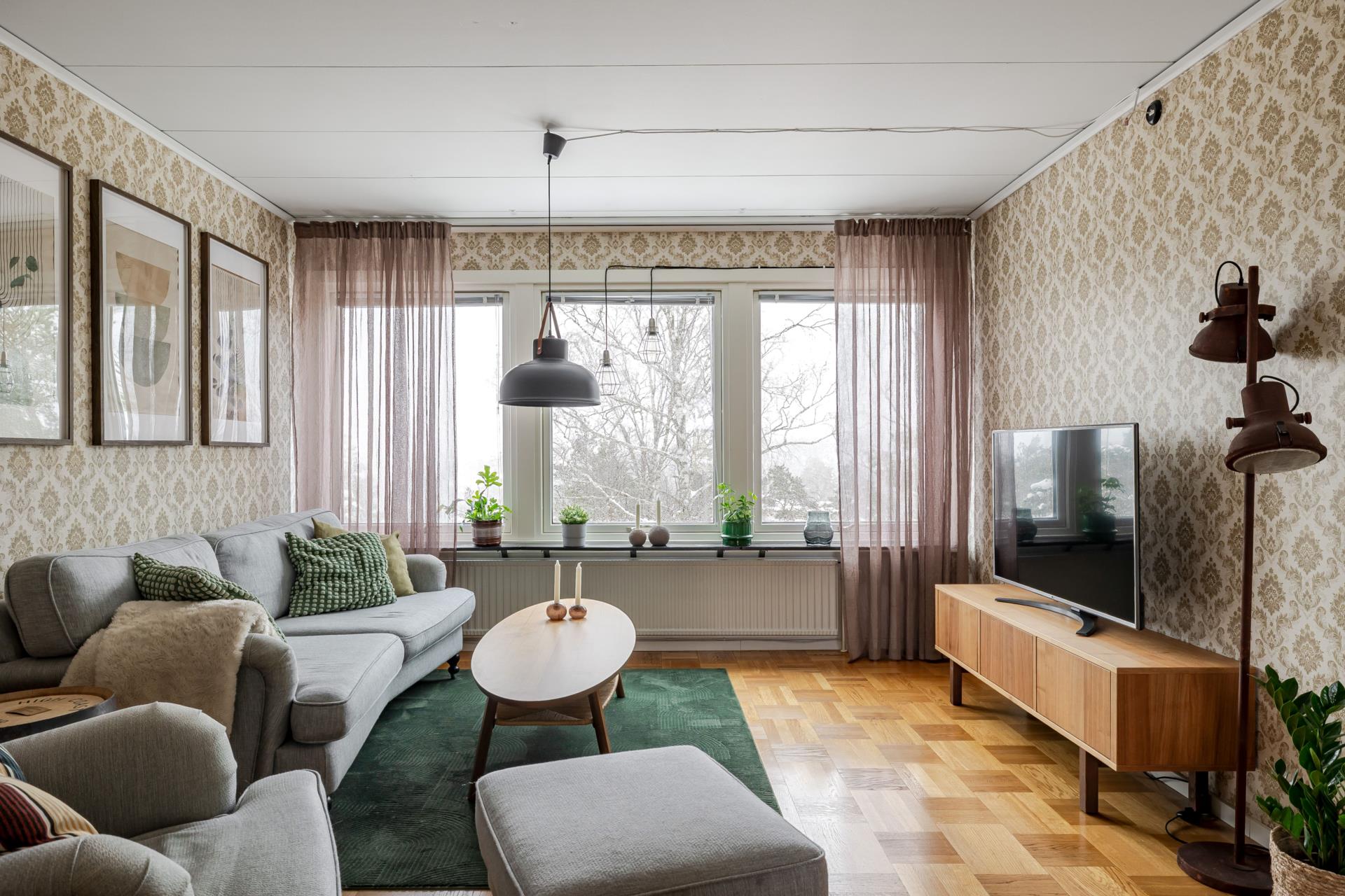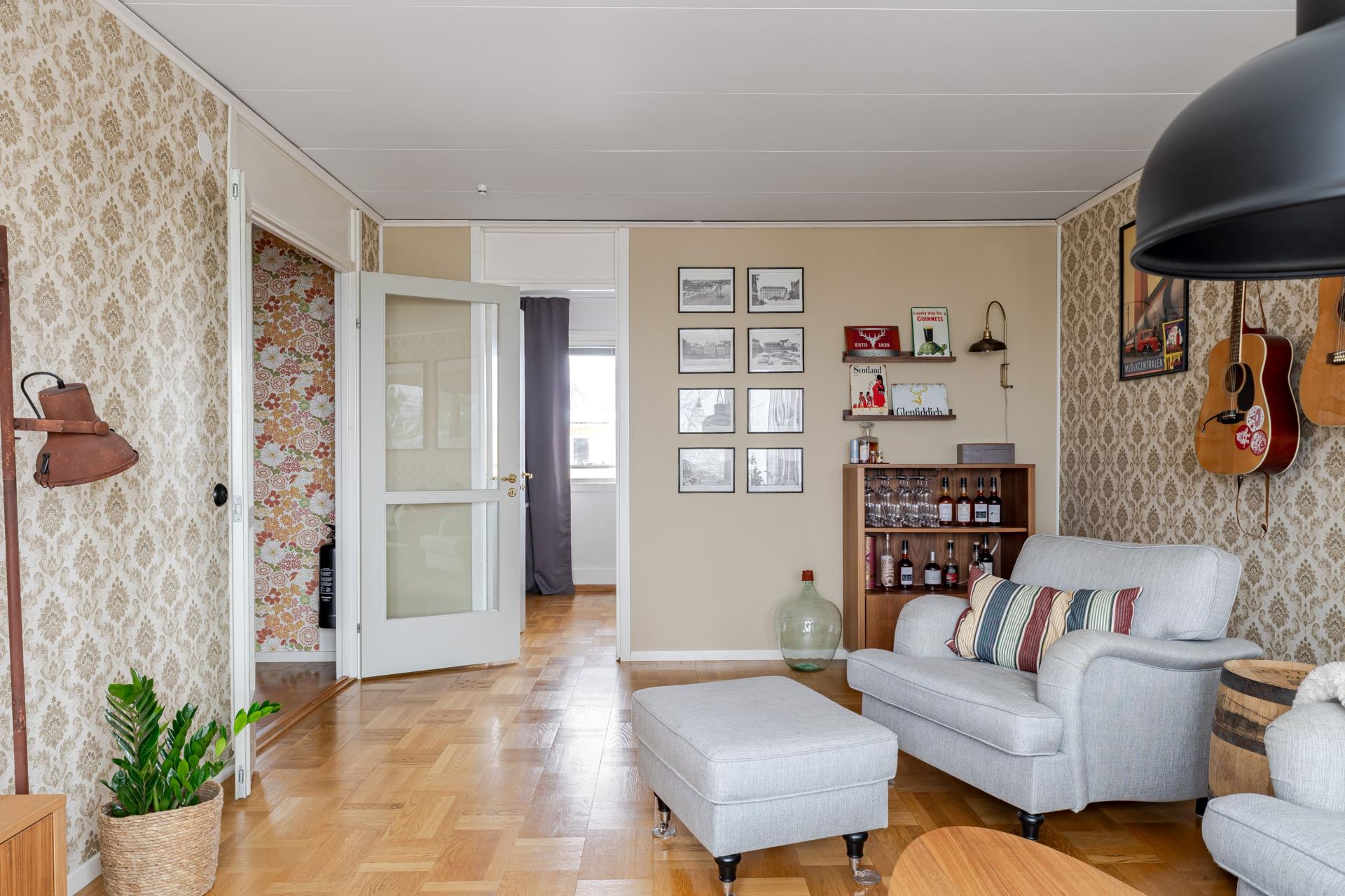 Bostaden disponeras med kök med matplats, ljust vardagsrum, separat allrum, fem sovrum samt två stilrent nyrenoverade duschrum.